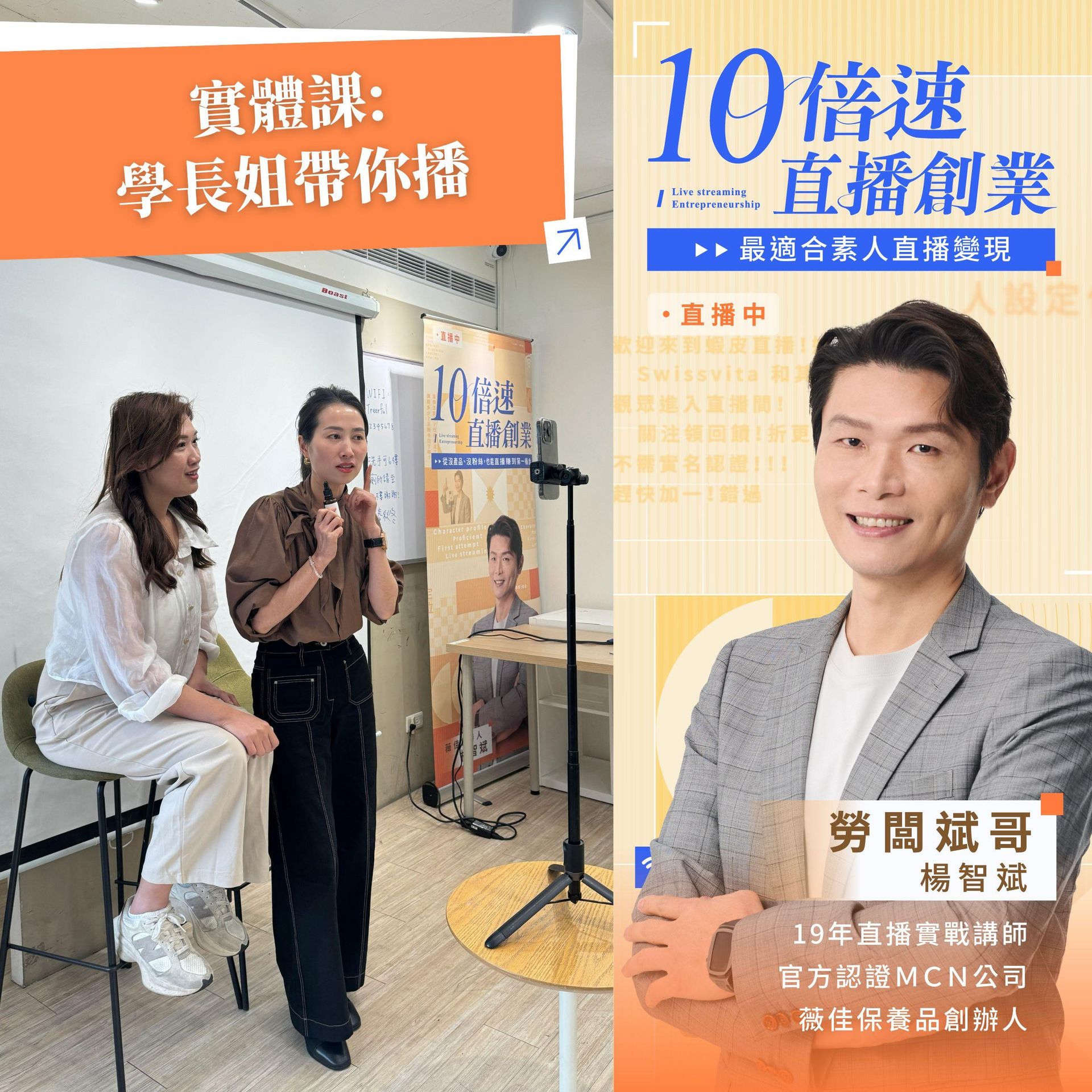 這些問題,用再多影片都很難解決,因為你需要的,已經不是知識,而是一個被設計好的「安全上場環境」,這正是《10倍速直播創業》實體課存在的原因。